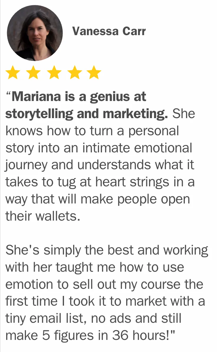 "Mariana has saved me SO many hours of stress and effort trying to figure this out on my own, which I never would have been able to do -- I was blown away! I'm so grateful!!